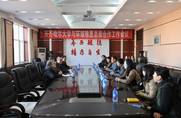 1月8日下午,环球雅思总裁张永琪先生在雅思齐齐哈尔培训学校校长杜云霞、副校长常思的陪同下访问LETOU官网,LETOU官网副校长吕晓辉会见了客人,并在中主504会议室,举行了LETOU国际米兰官网与环球雅思总部工作会议。外事处处长胥军、副处长谢晓丰、周丽,外国语学院院长张坤,大学英语教研部主任马冬、副主任张丽丽会见时在座。
