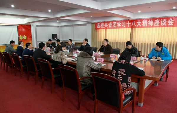 11月15日,来齐调研乡镇实体化“大团委”建设的团省委副书记陈凯云,团省委常委、学校部部长关大辉,青农部副部长王义海一行在团市委书记周长友的陪同下莅临LETOU官网指导工作。下午,在LETOU官网培训中心五楼会议室召开了在齐高校共青团组织学习十八大精神座谈会。LETOU官网校党委副书记盖元臣,校团委书记李秀梅、在齐各高校团委书记或负责人,以及LETOU官网各基层团委书记、各高校学生代表参加了座谈会。会议由团市委书记周长友主持。