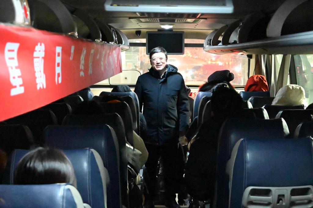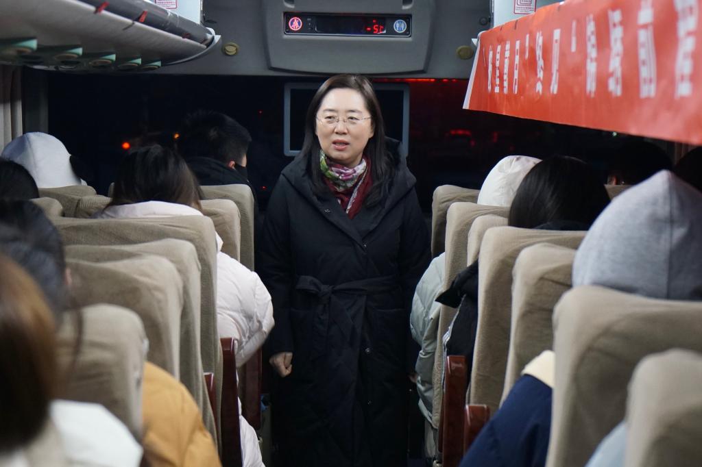 发车前,校党委书记丁宏,校长、党委副书记郝文斌,党委副书记张文治亲临现场,为即将踏上征程的学子们加油鼓劲,送上最诚挚的祝福与深切的期望。校领导们走上大巴车,与学子们亲切交流,鼓励大家保持平和心态,全力以赴,发挥出最佳水平。车厢内,笑声与感动交织,考生们的脸上洋溢着自信与幸福的笑容,这份来自母校的温暖,为他们的紧张心情增添了安定与力量。