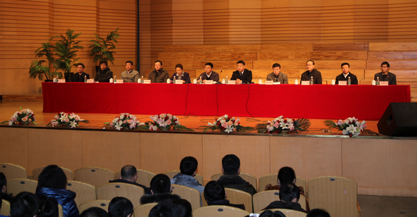 校党委书记李海红,校长马立群,校党委常务副书记王凤琴,校党委常委、纪委书记张学军,副校长邓启刚、王刚、吕晓辉、李英杰,工会主席李敏义,校长助理、教务处处长张树军,校长助理、党办校办主任尹鸥在大会主席台就坐,全校副科级以上干部参加了动员大会。