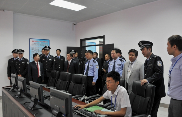 仪式结束后与会领导参观了校园110服务中心监控室及工作场所。