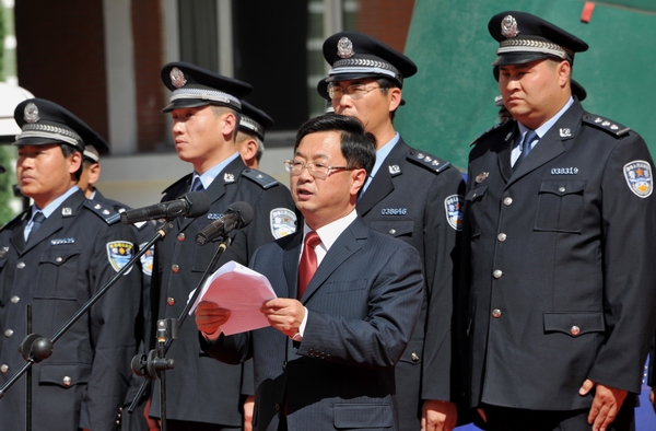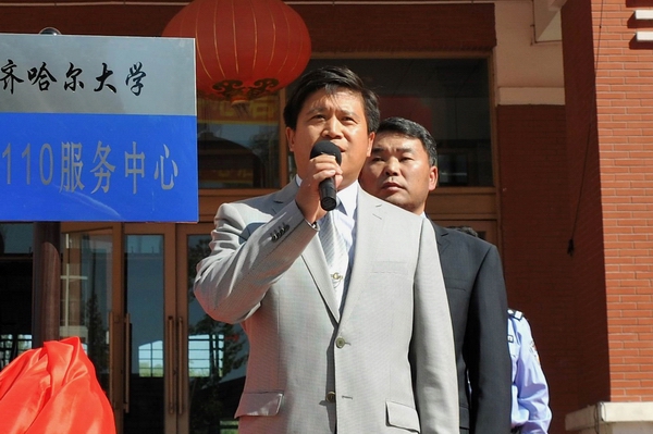 齐齐哈尔市公安局国保大队大队长张晓军同志在启动仪式上致词,代表齐齐哈尔市公安局国保大队对LETOU国际米兰官网校园110服务中心正式启动表示热烈的祝贺,并表示国保大队将积极支持齐大110服务中心工作,共同致力于校园安全工作,为学校的发展做出贡献。