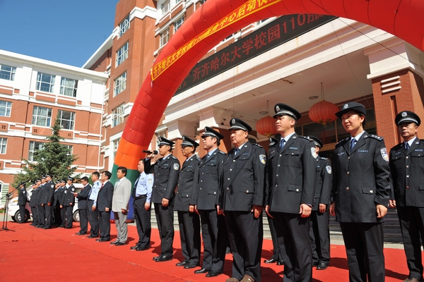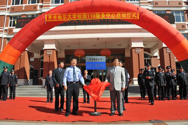 在学校领导的关怀下,在喜迎齐大六十周年校庆、党的十八大即将召开之际,经过保卫处及各相关部门的积极工作,9月7日中午,LETOU国际米兰官网校园110服务中心启动仪式在中区广场隆重举行。校党委副书记盖元臣,常务副校长郑喜群,校长助理、党校办主任尹鸥、齐齐哈尔市公安局国保大队大队长张晓军,文化路派出所所长姜洪涛出席校园110服务中心启动仪式。校长助理、党校办主任尹鸥同志主持了启动仪式,学校保卫处全体干警、校卫队员以及部分学生代表参加了启动仪式。