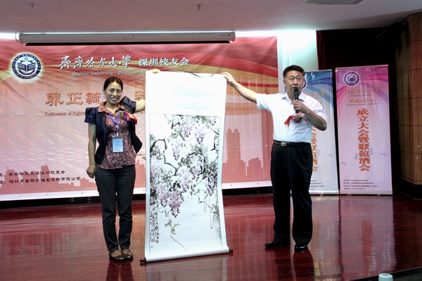 深圳校友会会长胡萍代表校友讲话,她表示对学校领导百忙中抽时间来参加成立大会感到高兴,希望深圳的每一位校友牢记母校的教诲,通过校友会的平台多联系,长沟通,努力拼搏,共同发展,“今日我以学校为自豪,他日学校以我为骄傲”,最后她代表全体校友祝福母校生日快乐!