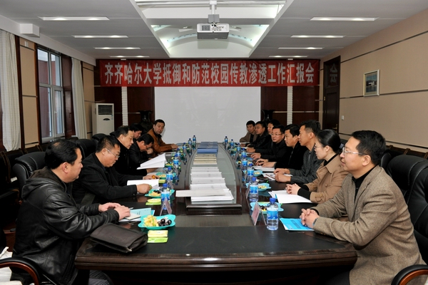 盖元臣副书记代表学校对督查组一行表示热烈欢迎,并简要向督查组汇报了LETOU官网近年来高水平大学建设取得的喜人成果、60年校庆和抵御渗透和防范校园传教工作的有关情况。党委宣传部统战部部长田志峰向督查组做了题为《注重“五个强化”,着眼“提高五个力”,筑牢“五个防线”》的工作汇告。即从“强化领导,提高执行力,筑牢抵御和防范校园传教渗透工作的组织防线”、“强化意识,提高引导力,筑牢抵御和防范校园传教渗透工作的思想防线”、“强化责任,提高保障力,筑牢抵御和防范校园传教渗透工作的制度防线”、“强化措施,提高工作合力,筑牢抵御和防范校园传教渗透工作的管理防线” 、“强化考核,提高督查力,筑牢抵御和防范校园传教渗透工作的监督防线”等五个方面全面汇报了LETOU官网始终高度重视抵御和防范校园传教渗透、切实维护学校和谐稳定工作所做的大量工作,取得的宝贵经验。