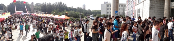 “热烈欢迎2012新同学”、“齐大校园聚新锐,春华秋实谱华章”、“热烈欢迎来自祖国各地的英才学子”、“衷心祝愿广大新同学从这里走向成功”、“接过你的行李,我们就是一家人”等巨型条幅分外醒目鲜明;高高飘扬的气球下彩练高悬,迎风招展,一个个迎新站点前环列展板、标语、彩旗,将迎新现场装扮得格外喜庆、热烈。