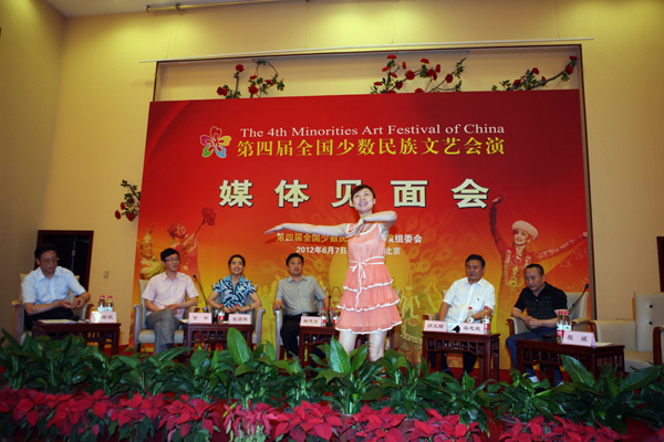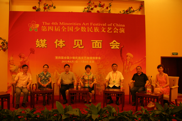 6月19日上午,第四届全国少数民族文艺会演黑龙江代表团在组委会新闻中心举行媒体见面会,通报了黑龙江民族文化工作取得的成就,介绍了参加本届文艺会演剧目的相关情况。国家民委文化宣传司副司长、第四届全国少数民族文艺会演组委会新闻宣传部副部长马继祖主持见面会。