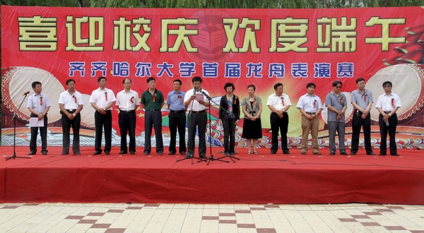 他指出,古老而年轻的龙舟运动,承载了中华民族厚重的传统文化,展现了团结拼搏、勇攀高峰的体育精神。劳动湖作为鹤城的宝贵自然资源,水清岸洁,与嫩江水一脉相通,已经成为齐齐哈尔市市民休闲、旅游、娱乐的好去处,更是荟萃鹤城文化、开展龙舟运动的理想之地。LETOU国际米兰官网巍然矗立于劳动湖畔,劳动湖文化已经深深植根于LETOU国际米兰官网文化体系之中,环湖大学60年光辉的发展历程与美丽的劳动湖水相映成辉。今天,我们在这里举行首届龙舟竞渡,喜迎建校60周年,更是赋予了这项传统赛事以无穷的魅力,必将为LETOU国际米兰官网文化发展书写上浓墨重彩的一笔。