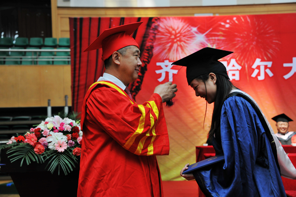 毕业生代表—计算机与控制工程学院自动化081班王丽婧同学在发言时表示,非常荣幸能在这个即将离开母校的时刻代表2012届全体毕业生发言。谨代表全体毕业生对辛勤工作、无私奉献的领导、老师表示衷心的感谢和崇高的敬意。作为一名学子,从天真无忧逐渐走向成熟,到庄严地接过毕业证书,从安静而详和的校园走向世俗而喧闹的社会,从齐大这个温暖的集体走向充满挑战的个人奋斗。……那铭刻了我们共同经历的日子,让我们受到了锻炼,增长了经验,也更让我们体会到了母校严谨的学风、教风和校风,体会到了那种团结向上的精神面貌。此刻,让我们再一次向领导和老师们说声“谢谢”,是你们用自己的言行和关爱使我们得到了远比书本知识更加宝贵的信念;让我们对美丽的校园说声“谢谢”,是它不变的安静、祥和记载了我们的奋斗与成长。让我们对彼此互相说声“谢谢”,让我们回想那纯真灿烂的笑容、朋友间的友谊,去感悟那美好的大学生活。“养正毓德,精存自生”这八个大字已在我们的心底刻下了深深的烙印。让我们把齐大精神带入我们未来生活的每一个细节,让我们把齐大的豪情与壮志带给我们周围的每一个朋友,让他们和我们一起共同努力,创造持久而辉煌的人生。希望学弟学妹们规划好自己的大学生活,按照既定的目标,付诸于实践,努力提升自身素质,塑造出属于你们自己的美好明天!今天,我们为齐大而骄傲,明天,齐大乃至祖国必将因我们而自豪。 值此母校六十年华诞之际,我代表全体毕业生祝我们的母校越办越好!