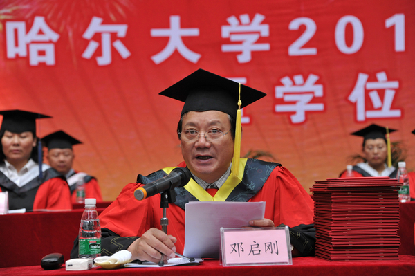 副校长、校学位评定委员会副主任邓启刚宣读LETOU国际米兰官网《关于授予研究生,留学生,本科学生学位的决定》。