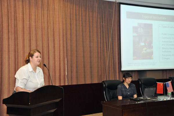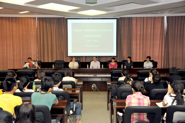 会谈结束后,美国驻沈阳总领事馆副文化领事吴剑向LETOU官网图书馆赠送了图书。美国驻沈阳总领事馆Danielle Rossi女士、信息中心助理肖白为LETOU官网学生做了美国高等教育情况专题讲座。