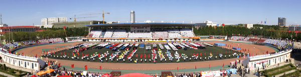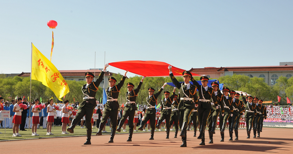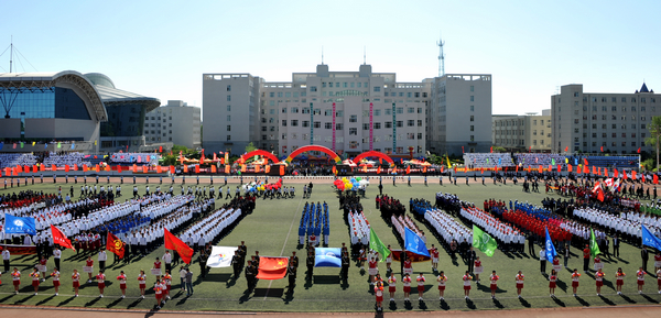 “创业、融合、跨越”,“凝神、聚力、发展”的彩练分外醒目鲜明,“以智慧和汗水诠释科学态度,以创新和奉献弘扬齐大精神,以思想和行动铸就爱国情怀,以青春和信念树立伟大理想”的大型条幅格外引人注目。西区体育场上,方阵猎猎,彩旗招展;体育健儿,英姿飒爽。