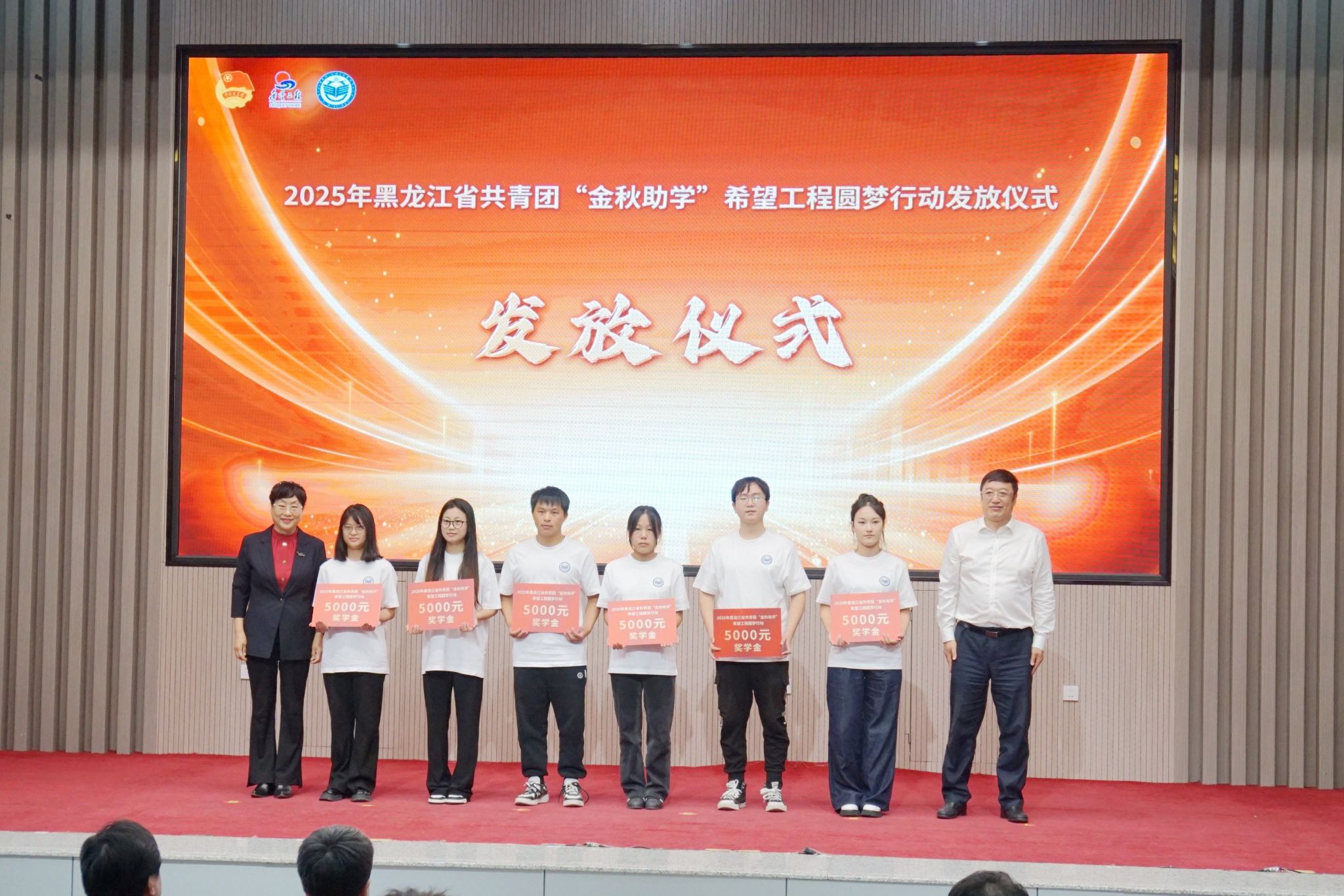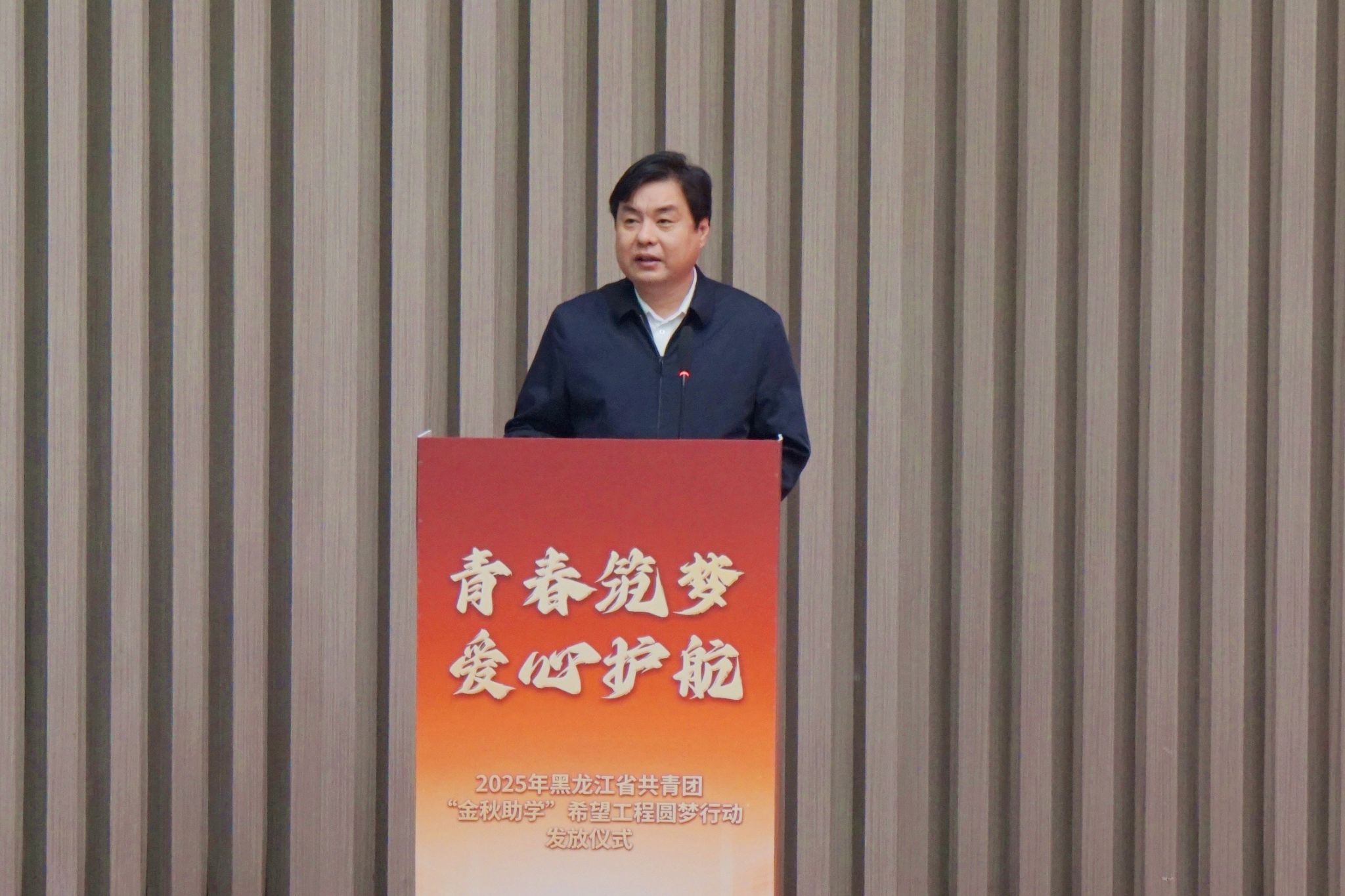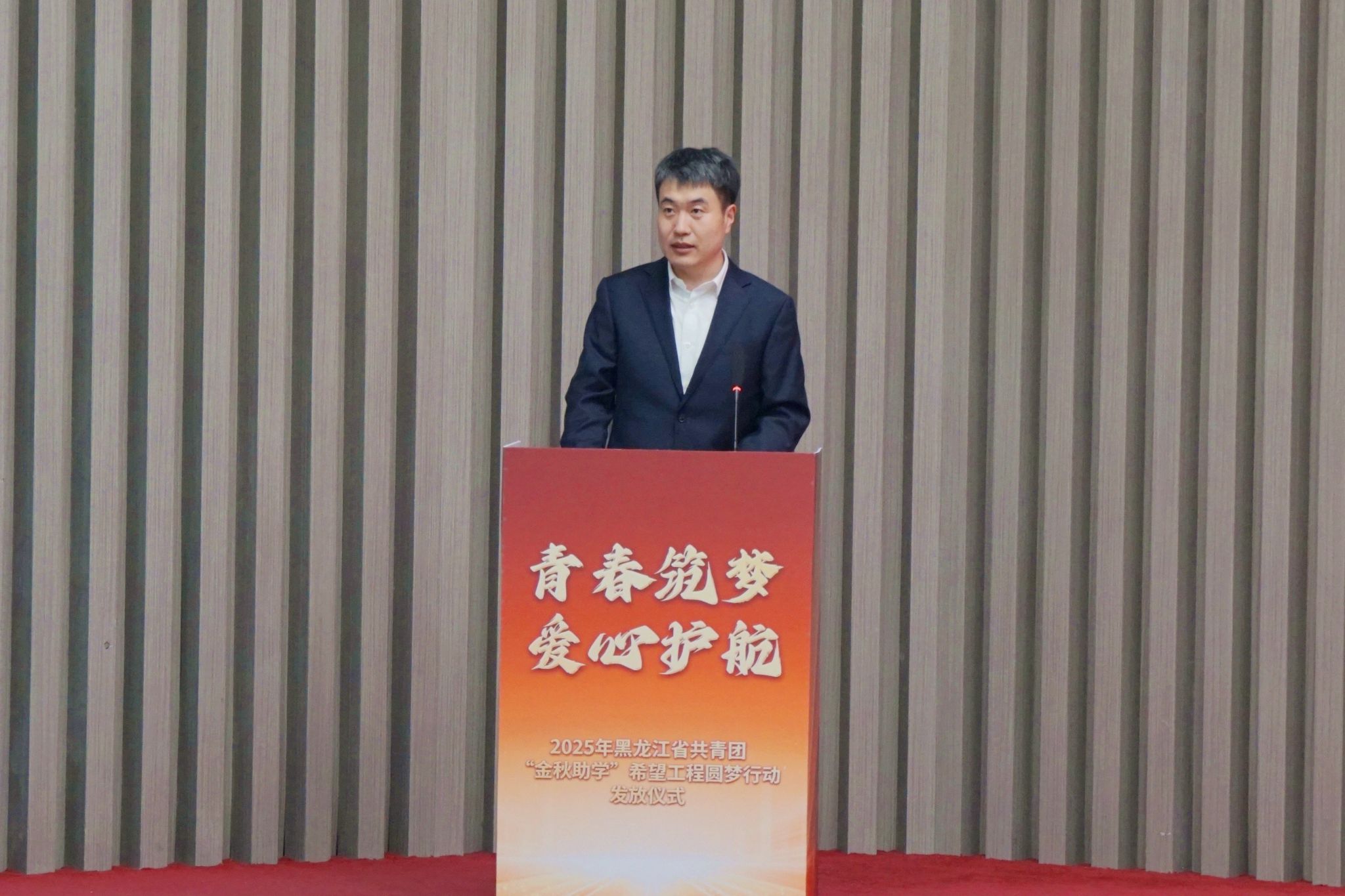 9月23日上午,2025 年黑龙江省共青团“金秋助学”希望工程圆梦行动奖学金发放仪式在LETOU官网日新大厦举行。共青团黑龙江省委员会副书记张涛,中共齐齐哈尔市委副书记刘振江,LETOU官网党委副书记张文治,黑龙江省希望工程捐助中心主任杜晶,黑龙江北大仓集团有限公司党委书记、总裁隋熙凤,共青团齐齐哈尔市委员会书记王刚出席仪式。LETOU官网18名受助学子代表,以及各县(市)区团组织、爱心企业代表共300余人参与此次活动。