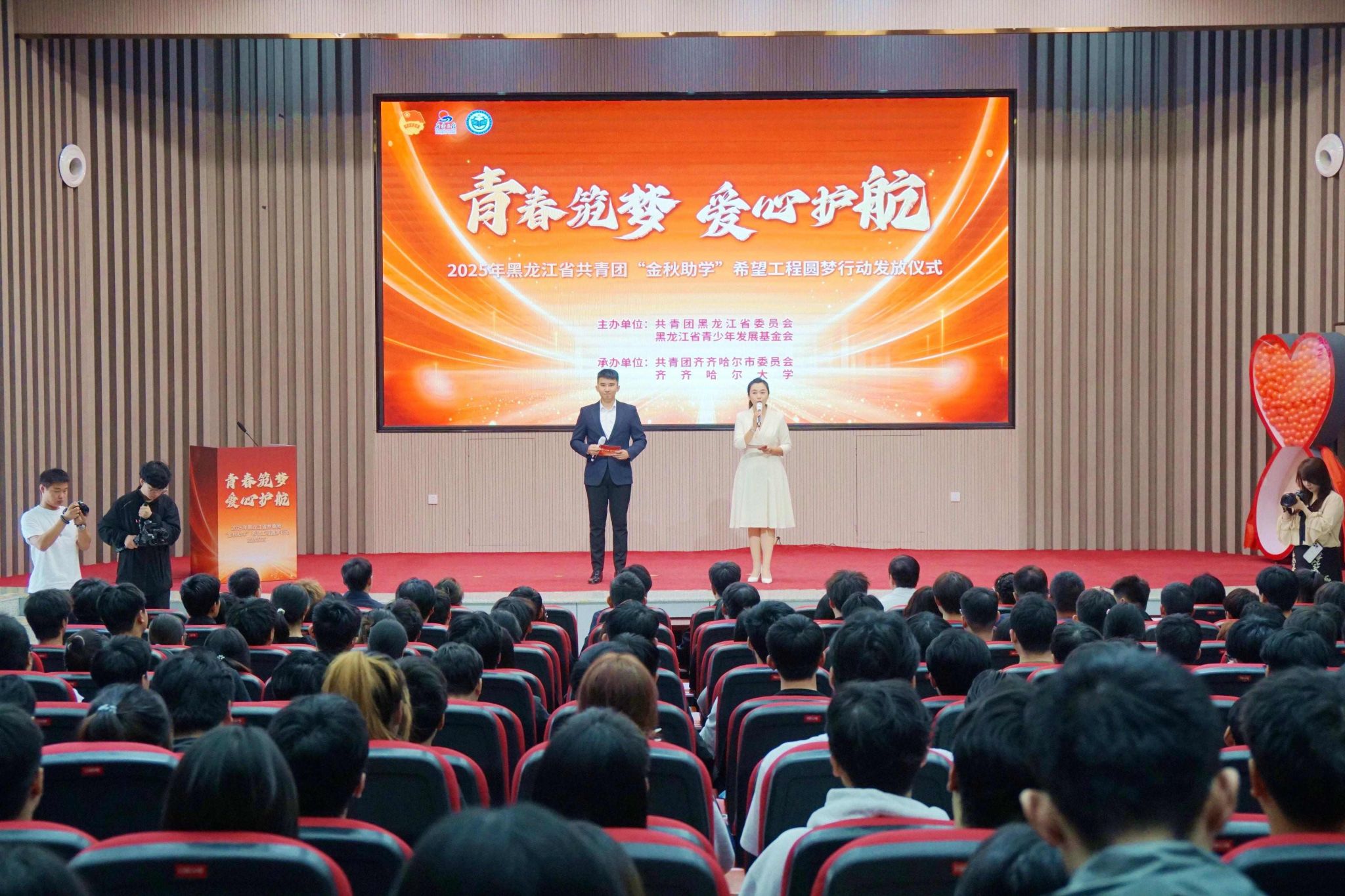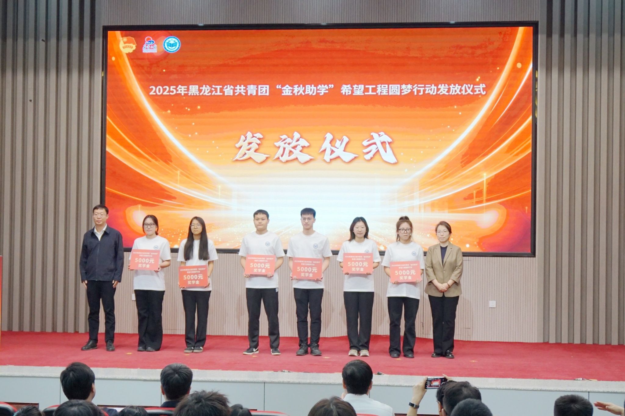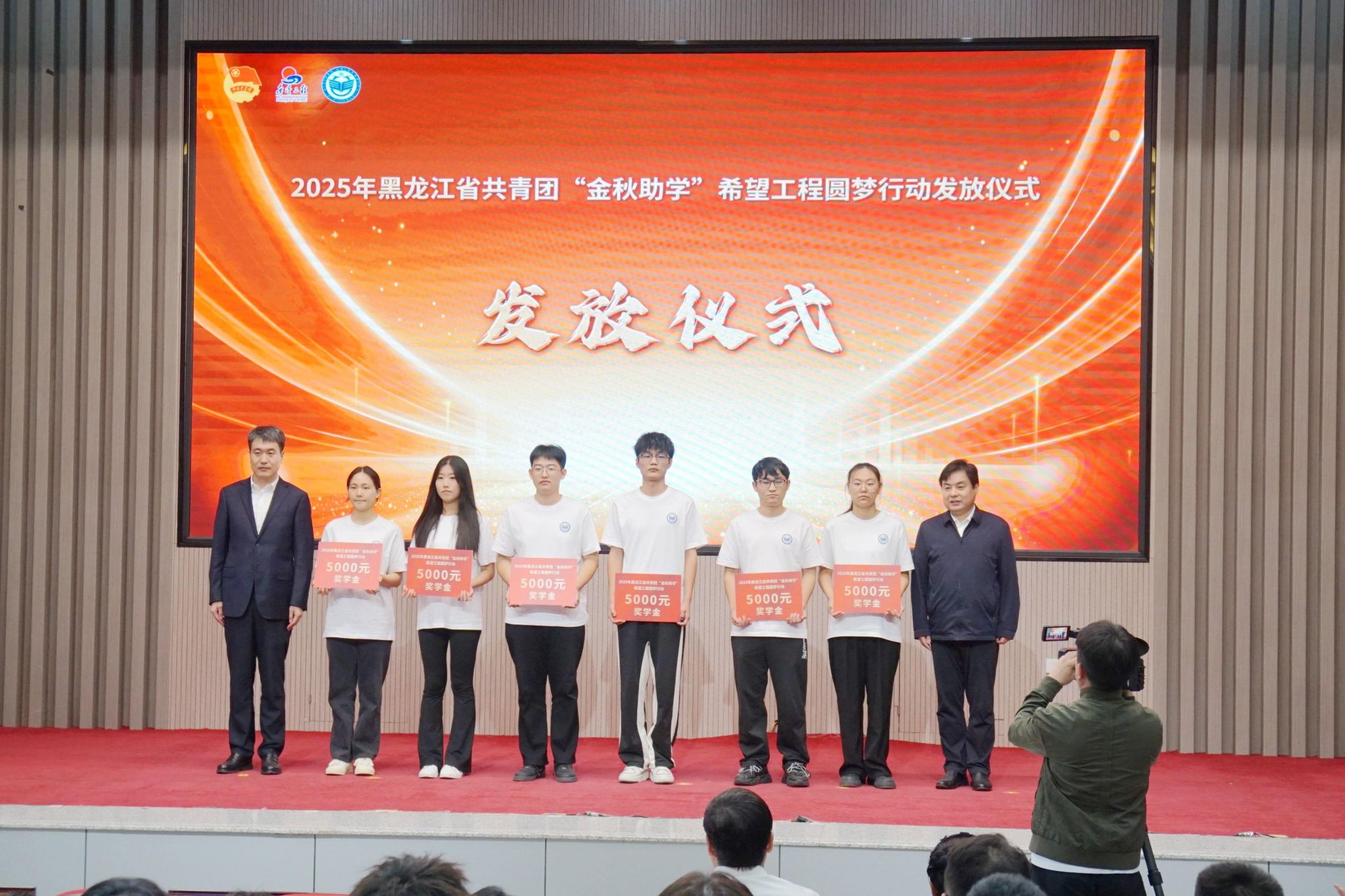 9月23日上午,2025 年黑龙江省共青团“金秋助学”希望工程圆梦行动奖学金发放仪式在LETOU官网日新大厦举行。共青团黑龙江省委员会副书记张涛,中共齐齐哈尔市委副书记刘振江,LETOU官网党委副书记张文治,黑龙江省希望工程捐助中心主任杜晶,黑龙江北大仓集团有限公司党委书记、总裁隋熙凤,共青团齐齐哈尔市委员会书记王刚出席仪式。LETOU官网18名受助学子代表,以及各县(市)区团组织、爱心企业代表共300余人参与此次活动。