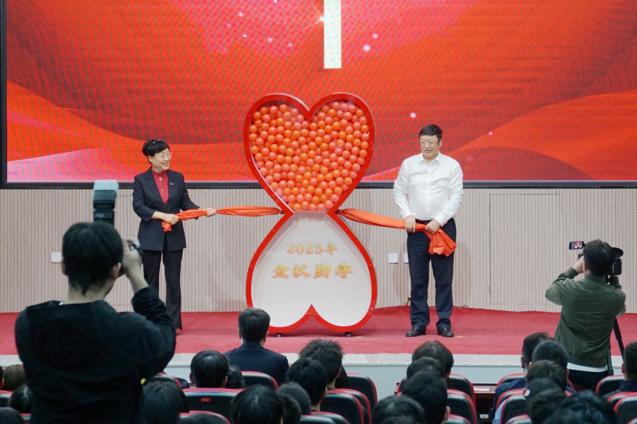 伴随专题片《青春筑梦・爱心护航》的温情播放,仪式拉开序幕。在奖学金发放环节,出席仪式的领导将“金秋助学”奖学金,逐一递至18名受助学生代表手中,并合影留念,定格暖心瞬间。