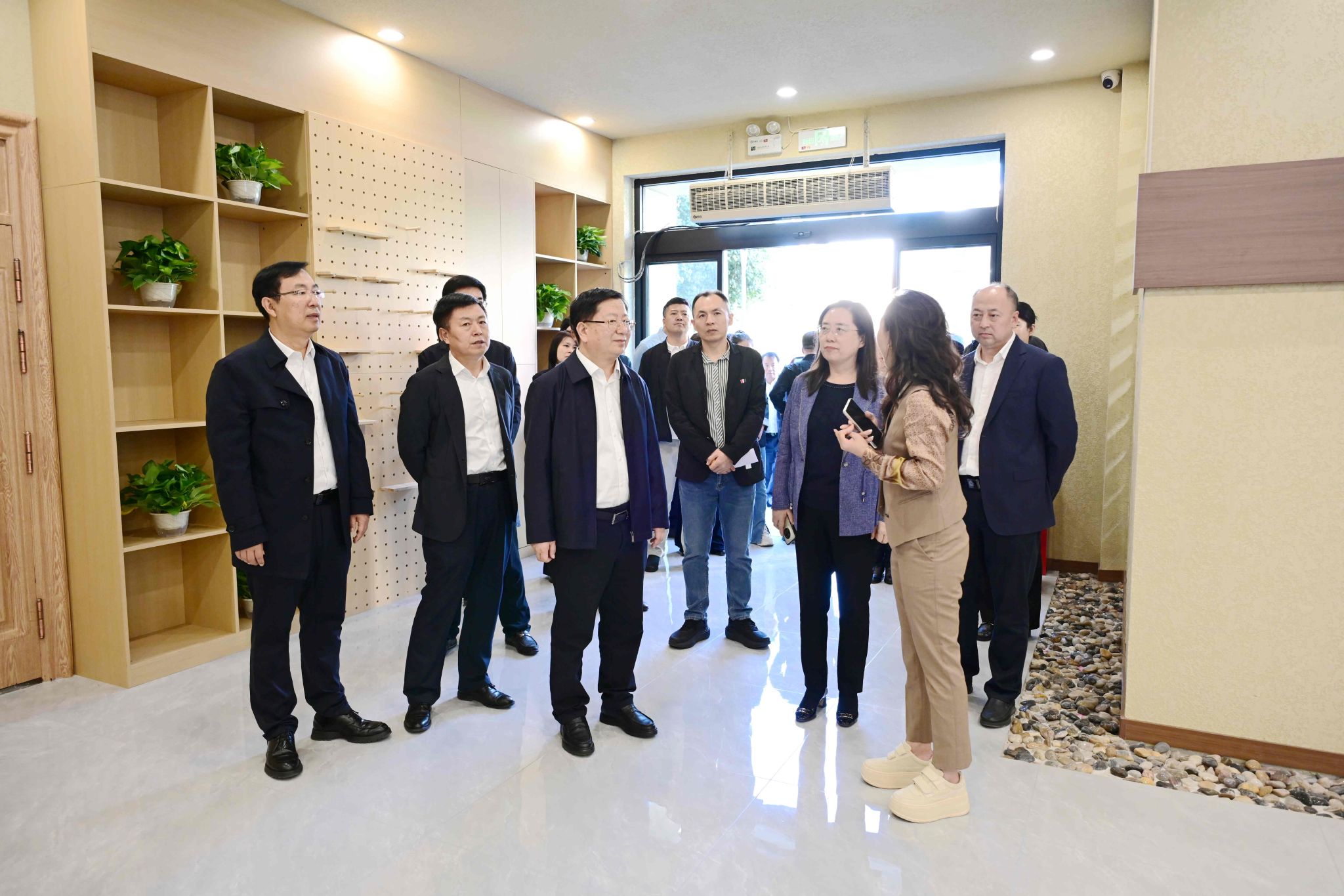 调研组一行实地考察了鹤城人才驿站一站式就业服务大厅、住宿等功能区,详细了解驿站服务模块和智能化就业支持系统,现场体验了AI模拟面试、职业测评和远程招聘对接等功能平台。