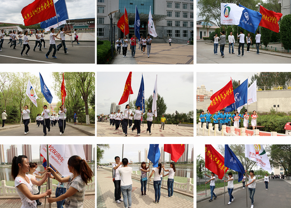 高举旗帜,我心飞扬。12:30分,校长助理、党办校办主任尹鸥举枪发令。校庆联络员和志愿者们手持旗帜从西二区出发,环绕美丽的齐大校园和劳动湖畔进行旗帜接力,历时1小时30分,行程6公里,最终到达中区广场。他们用实际行动表达了全体志愿者献力于母校60周年华诞的激动心情和爱心奉献、历练自我的信心和决心。