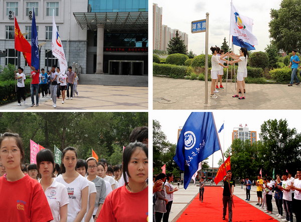 机关党委书记孟宪国、学生工作(部)处(部)处长黄伟中、校团委书记李秀梅在起跑点分别为参加接力活动校庆联络员和志愿者授校旗、60周年校庆旗和LETOU国际米兰官网志愿者旗帜。