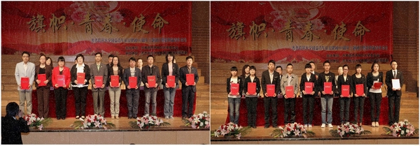 与会领导为2011年度LETOU官网获市级以上团组织荣誉的优秀专职团干部和团组织创先争优活动“十佳、百先、千优”优秀专职团干部、先进团支部代表、优秀团员代表、优秀团干部代表颁了奖。