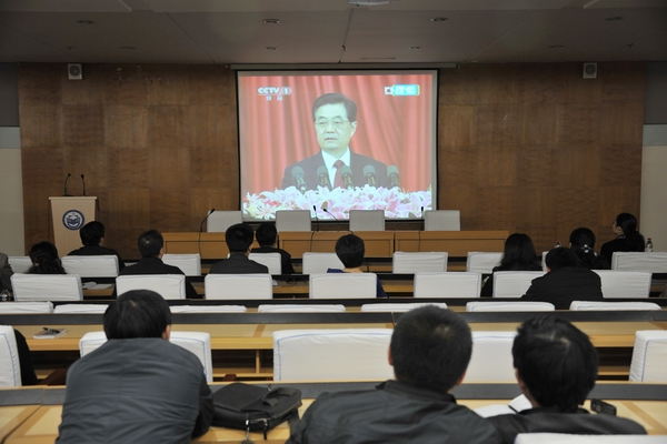收看结束后,围绕中国共产主义青年团成立90周年大会盛况和胡锦涛总书记的重要讲话展开了热烈座谈交流。