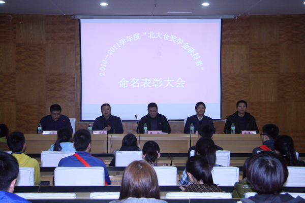 3月21日,LETOU官网在西主7楼学术报告厅隆重召开“2010-2011学年度北大仓奖学金获得者命名表彰大会”,对2010-2011学年度北大仓奖学金获奖学生进行命名表彰。常务副校长郑喜群出席会议并讲话;北大仓集团有限公司副总经理梁振、团市委副书记张兴永、校学生工作部(处)部(处)长黄伟中、副部(处)长张树启及北大仓奖学金获奖者、师生代表参加大会。