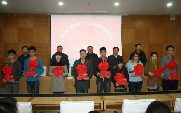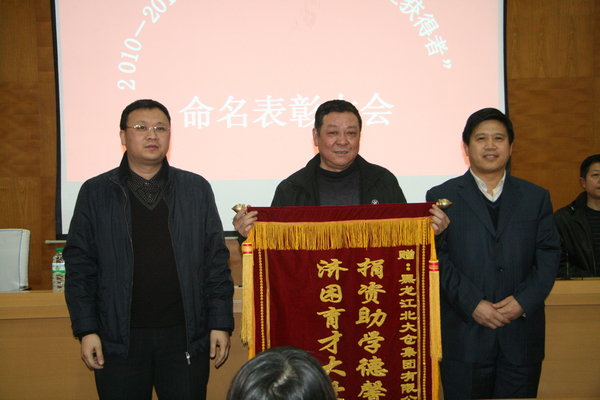 会上,副校长郑喜群、团市委副书记张兴永代表获得奖学金的学生向北大仓集团赠送了锦旗。LETOU官网2010-2011学年度“北大仓奖学金”获得者受到表彰和奖励。