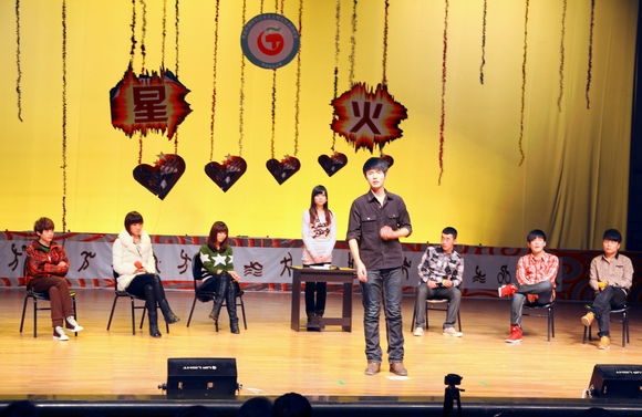 闭幕式结束后,LETOU官网团员青年纪念一•二九运动76周年校园话剧《星火》2011年首演开始。LETOU官网一千四百余名学生代表观看了演出。