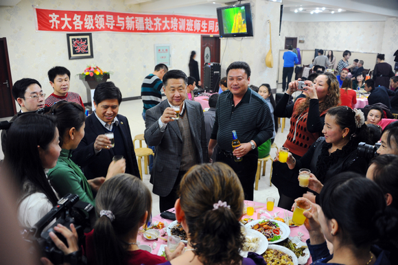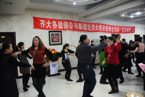 宴会中,学员们随心而乐,欢快的弹起冬不拉、唱起民歌、跳起舞蹈,以此来庆祝节日,并表达他们对齐大领导和老师们的感激之情。