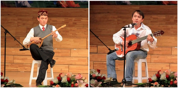精彩的民族舞蹈串烧《中华儿女》拉开了本场晚会的帷幕,欢快的旋律,绚丽的舞姿使晚会一开始便有了浓郁的节日气氛。晚会节目纷呈,形式多样,有《黑走马》、《加尔加尔》等热情奔放的新疆传统舞蹈,有《故乡》、《白泉》等哈萨克族歌曲,曲调优美,感情饱满。小合唱《住进你心窝》、何媛媛、曹渊博、加依娜努尔、叶尔江朗诵的《我们都是感恩的孩子》,以及唐小菲、朱马汉朗诵的《感恩之情融于点点滴滴》用朴实的语言记叙了学员们在LETOU国际米兰官网的生活,表达了新疆班学员对祖国的感恩、对齐大的感谢之情。接下来的冬不拉伴奏哈萨克族歌曲让现场观众连声叫好,参加表演的同学各个青春洋溢,为在场的观众上演了绝美华伦的视听盛宴,使得整个晚会现场的气氛一路高涨。最后由多才多艺的学员夏乐哈尔以一首激昂的《红旗飘飘》拉下了本场晚会的帷幕。特别值得一提的是得知新疆班举办欢庆“古尔邦节”文艺汇演的消息,教育与传媒学院合唱团友情奉献的歌曲《祖国,慈祥的母亲》,国培计划2011年小学美术专业的培训学员焦艺春当场演唱的《爱的神话》,增添了晚会民族大融合的色彩,也让新疆学员们感受到了国培学员对LETOU官网师生的深厚情意。在哈尔滨商业大学培训的新疆学员还赶到晚会现场助兴,并献上了一首吉他弹唱《外面的世界》。