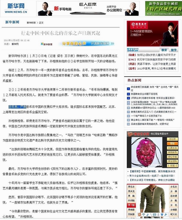 新华网黑龙江频道:http://hlj.xinhuanet.com/news/2011-11/30/c_131278703.htm