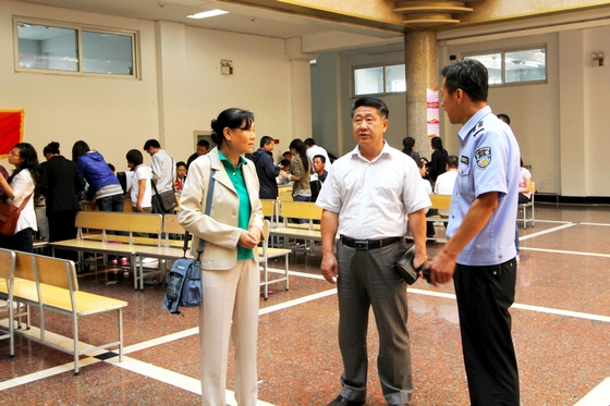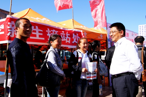 9月3日早晨,校领导李海红、马立群、王凤琴、盖元臣、姜守训、郑喜群等深入到迎新接待站现场,对学校各部门、各单位迎新接待服务工作进行检查指导。学校要求各部门、各单位全体迎新接待服务人员,积极创造条件,为新生入学报到提供优质、周到、细致的人性化服务。学校领导还特别深入到“新生入学绿色通道”,看望现场工作情况,并同在场学生及家长进行了交流,勉励新同学自强不息,积极进取,奋发有为。