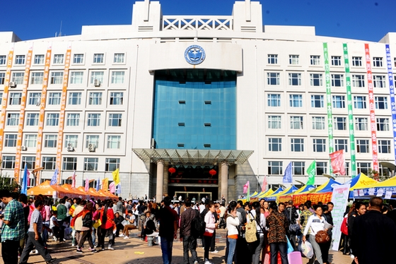 校园内外,人头攒动,青春飞扬,红花绿树掩映着楼宇,教学楼、公寓楼、食堂……到处洋溢着青春的笑脸,金秋的校园里涌动着和谐的乐章。