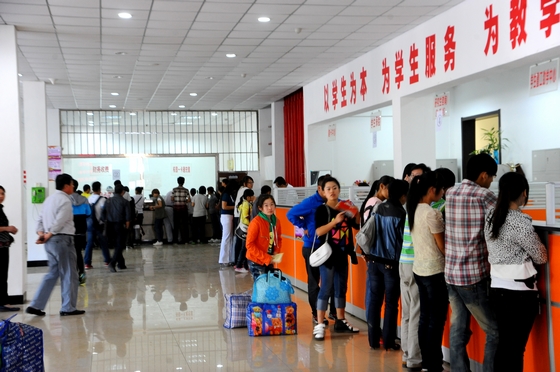 为做好家庭经济困难新生的入学报到工作,学校专门在东区学生指导中心一楼和西区教学主楼一楼124室专门设立了“新生入学绿色通道”,专程负责办理特困学生入学报到手续,负责向特困生及家长说明助学金、奖学金、特困补助、勤工助学等有关情况,登记有关信息。学校工作人员充满人文关怀,积极为家庭经济困难的新生服务,帮助他们顺利通过新生入学“绿色通道”,从速办理入学报到手续,百迎不倦,百问不烦,百答不厌。整个服务工作中体现了“温暖、尊重、服务、和谐”,让家庭经济困难的新生和家长感受到党和国家及学校的温暖和关爱。(摄影: 樊友才 陈振东 邹佳芳 孙旭磊 程功)