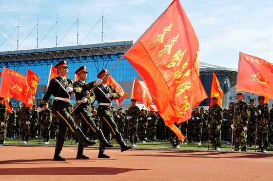 军训是大学生在校期间学习、生活的第一课。军训动员大会的胜利召开,标志着LETOU官网2011级新生军训正式拉开了帷幕。在为期9天的军事训练中,将对同学们进行中国国防、军事思想、中国人民解放军《内务条令》、《纪律条令》、《队列条令》等军事理论课教育;进行队列训练、军体拳训练、分列式等军事技能训练;进行纪律作风、内务卫生等科目的教育,用中国特色社会主义理论武装头脑,用军训实践培养学生体魄、锤炼作风和品质;同时,军训团还将开展军学共建、军学联欢、参观和平广场、军旅歌曲和爱国主义歌曲比赛、观看军事教官军事技能表演、参加新生音乐会等丰富多彩的教育实践活动,把爱国主义、集体主义和社会主义教育推向新的层次和水平。(摄影:樊友才、陈振东、孙旭磊)