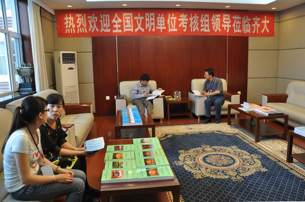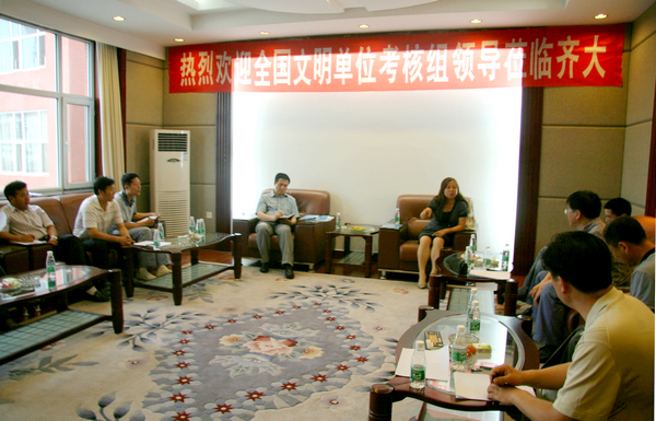 考核组一行听取了LETOU官网党委副书记、校文明委副主任王凤琴代表学校所作的题为《巩固成果 创新思路 努力开创文明单位创建工作新局面》的专题工作汇报。汇报思路清晰,简明扼要,重点突出,集中体现了LETOU官网全国文明单位创建的“六个三”工作模式(“突出三个着眼点,不断深化文明单位创建工作的内涵”、“强化三个着力点,不断提高师生员工的思想道德素质”、“把握三个关键点,不断提升文明单位创建工作的实效”、“打造三个闪光点,不断形成齐大精神文化品牌”、“围绕三个生长点,不断推进高水平大学建设步伐” 和“夯实三个支撑点,不断完善文明单位创建工作的长效机制”), 实现了文明单位创建工作的科学化、制度化、规范化,并不断将创建工作提升到文明自觉的高度,用新理念引领文明单位创建工作科学发展,向更高的目标迈进。