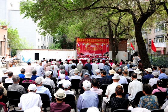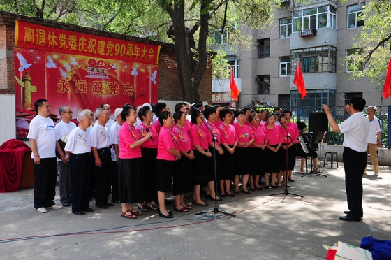 庆祝大会结束后,离退休党委举行了庆祝建党90周年文艺演出。离退休教职工高唱革命歌曲,颂扬党的丰功伟绩,讴歌幸福和谐生活,他们用真挚朴实、激昂慷慨的洪亮歌声,向党的90华诞、向更加美好的明天表达祝福与心愿。