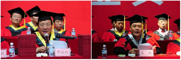 校长马立群教授一一为获得学位的毕业生代表正冠拨苏,颁发学位证书并合影留念。全场师生报以热烈的掌声向他们表示热烈祝贺!