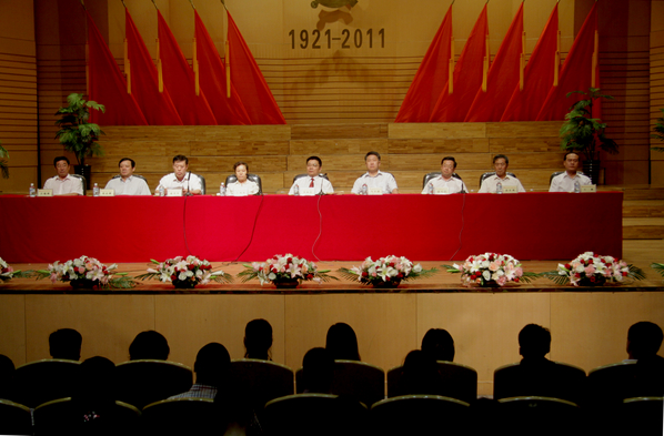 他指出,中国共产党成立90年来,领导中国人民走过了波澜壮阔的奋斗历程,取得了举世瞩目的辉煌成就。中国共产党领导全国各族人民开创了中国特色社会主义事业,为实现中华民族的伟大复兴开辟了正确道路,为夺取全面建设小康社会新胜利、加快推进社会主义现代化开辟了广阔的前景。事实雄辩地证明,中国共产党不愧为伟大、光荣、正确的马克思主义政党,不愧为领导中国人民开创新事业的核心力量。90年的历程彰显一个颠扑不破的真理:没有共产党,就没有新中国!没有共产党,就没有中华民族的伟大复兴!