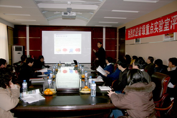 LETOU官网精细化工重点实验室主任郭祥峰教授采用PPT形式在评估工作会议上作了情况汇报,就实验室的基本建设、科学研究、人才队伍建设、开放与联合、实验室管理等情况作了详细说明,并一一回答了专家的提出的问题。