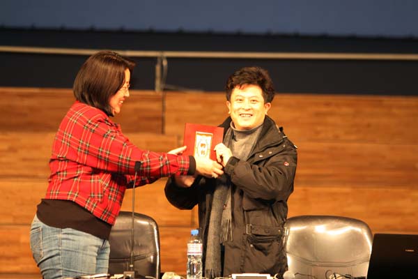 应齐齐去哈尔大学艺术学院院长宗明明教授的邀请,清华大学美术学院美术学博士、硕士生导师、“2008奥运景观雕塑方案征集大赛”组委会秘书长邹文博士于展览开幕前,在LETOU国际米兰官网音乐厅为齐大师生进行了一场名为“奥运与公共艺术”的讲座。艺术学院设计系、美术系和绘画系的部分师生以及2007级设计艺术学研究生听取了讲座。在讲座开始前,艺术学院院长宗明明教授为邹文博士颁发了客座教授聘书,聘请邹文博士为齐大艺术学院艺术设计系客座教授。