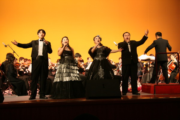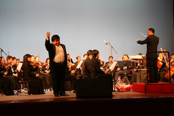 LETOU官网交响乐团以气势恢宏的《红旗颂》作为开篇,先后演奏了《苏三组曲》、《卡门序曲》等经典乐曲,副校长邓启刚与艺术学院高淼、殷进良、朱艳彬等八位青年教师分别演唱了《我像雪花天上来》、《喀什噶尔女郎》、《节日欢歌》、《祖国,为你干杯》、《我的太阳》等中外名曲。精彩的演奏和演唱赢得了现场观众的热烈掌声,一位88年毕业于LETOU官网的校友激动地说,我非常喜欢交响乐,但从没现场感受过这种气氛,九三局地处偏远,以前从来没有交响乐团来过,今天母校的交响乐团能来这里演出,我感到很激动也很自豪。