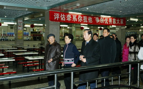陈至立等领导一行冒着严寒先后考察了LETOU官网大学物理实验中心、多媒体教学系统主控室、网络信息中心、体育馆、精细化工重点实验室、学生食堂、艺术中心等处,亲切看望广大师生并向大家转达了党和政府的诚挚慰问。