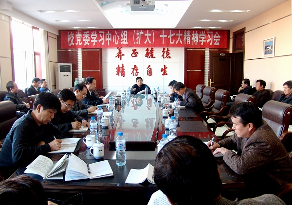 按照校党委《关于认真学习贯彻党的十七大精神的意见》提出的学习要求,11月20日下午,校党委理论学习中心组在机关办公楼504会议室举办十七大精神第四次集体学习。