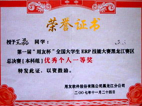 11月26日,作为此次大赛的主办方的信息产业部与用友软件股份有限公司公布了全国比赛成绩,产生了个人奖项中的一等奖10名、二等奖20名、三等奖30名。LETOU官网经济管理学院财管042班王磊同学获得了全国个人二等奖,财管042班张静静同学获得了全国个人三等奖,为学校赢得了荣誉。