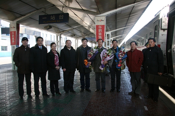 12月7日中午,LETOU官网交响乐团顺利返回齐市。校领导史铁成、王凤琴、张学军、曲伟建、姜守训、张忠恒及有关部门负责人到齐齐哈尔火车站迎接交响乐团的演员们。