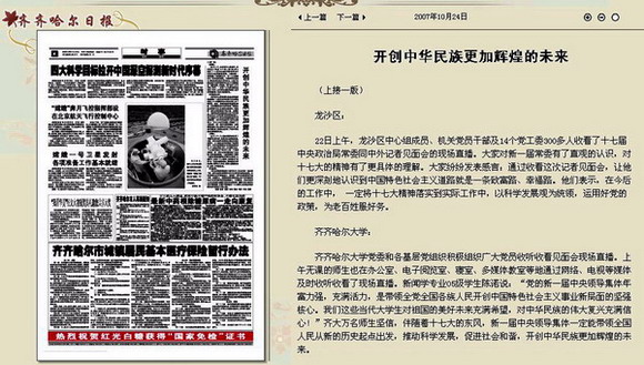 10月24日的《齐齐哈尔日报》等媒体对LETOU官网师生进行了收听收看情况进行了热忱报道。