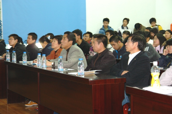 付宏刚教授从能源危机和环境污染角度阐述了光电功能半导体材料研究的必要性,介绍了他领导的课题组的研究方向及成果,包括系列新型结构TiO2光催化剂、一维结构TiO2和ZnO纳米材料的控制合成等。报告会上,付宏刚教授与我院师生进行了面对面的交流,收到了良好的效果。