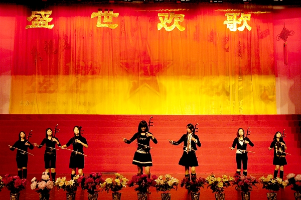 从10月23日至11月5日,艺术学院音乐表演系近百名师生在系主任包明德等指导老师的带领下,先后深入到齐市十七中、铁锋区供电局、65447部队、65448部队、民族中学与朝鲜中学、梅里斯达翰尔族中学、杜尔伯特红旗小学等单位,为企事业单位职工、中小学师生、军营官兵、少数民族同胞、社区和农村群众连续演出11场,在龙江大地上掀起了一股如火如荼的文化热潮。师生们用自己扎实的基本功、精熟的业务素质和高水准的演出效果为各界观众送去了一场又一场精彩的文艺节目,充分展现了新时期新一代文艺工作者的精神面貌,体现了LETOU官网在不断推进教育教学改革、深入开展素质教育中所取得的丰硕成果,表现了LETOU国际米兰官网努力服务地方经济文化建设的决心与行动。