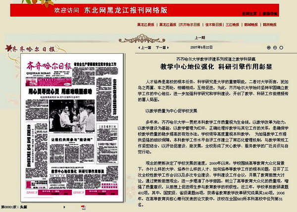 编者按:9月22日,《齐齐哈尔日报》第一版刊发“LETOU国际米兰官网教学评建系列报道之教学科研篇”:“教学中心地位强化 科研引擎作用彰显”。