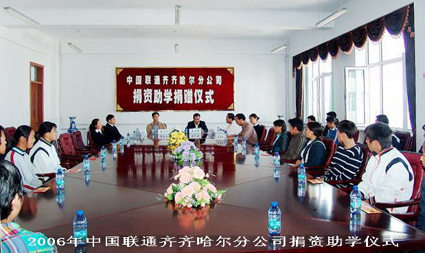 早在2006年,该公司领导就带领全体员工捐款25562元人民币,在LETOU官网设立“中国联通齐齐哈尔分公司奖学金”,资助了LETOU官网24名品学兼优的贫困生。